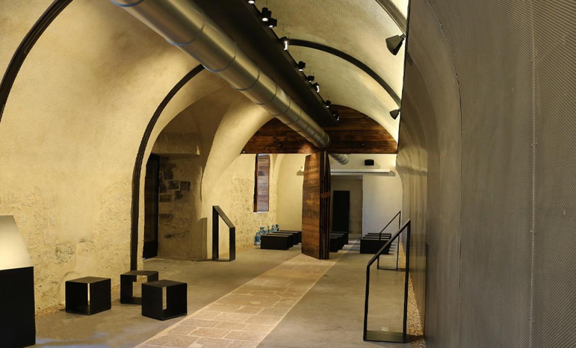Ensuite, et sur un programme du Département des Alpes-Maritimes maître d’ouvrage de l’opération, un aménagement scénographique permettant plusieurs scenarii d’exposition tout en s’appuyant sur l’architecture existante a été réalisé : les parois sont partiellement doublées d’une peau en acier brut micro perforé pour permettre des présentations sur cimaise ; les bat-flancs servent de support aux vitrines sécurisées.
